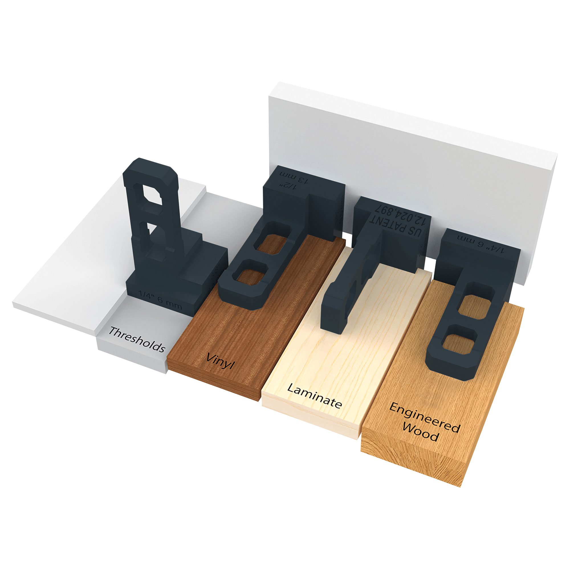 Roberts Flooring Spacers R1029 4-in-1. For use with vinyl, laminate, engineered wood and threshold installations. x30 patented 4-sided spacers allow for 6mm, 9.5mm, and 13mm expansion gaps, along the wall and 25mm for thresholds between rooms.